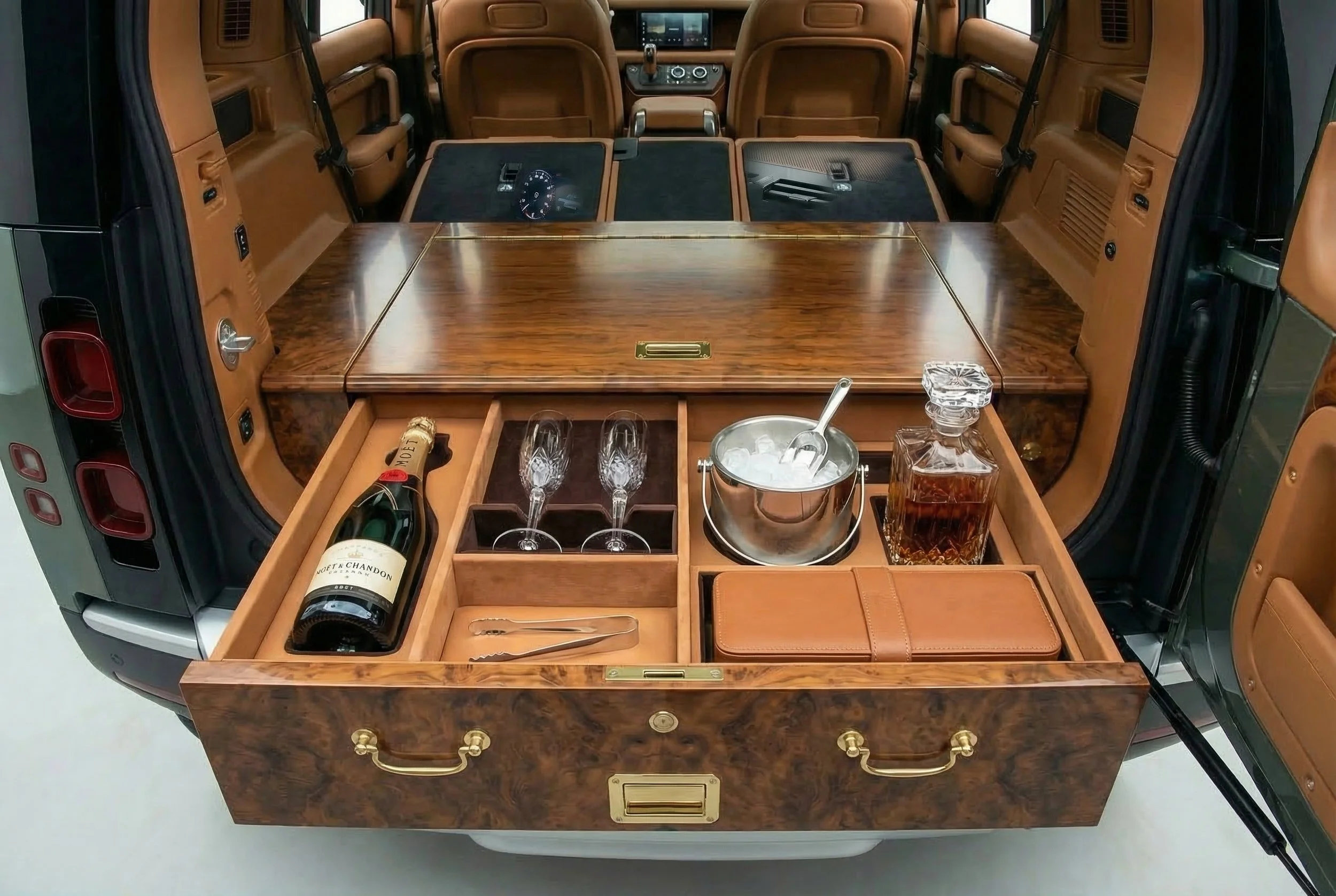 Station wagons were now the mainstay of outlander projects and the range of options was truly world class. New products included. curved walnut centre consoles, bespoke aluminium shifter plates, panoramic glass roofs, solid walnut and wenge decks and woven leather interiors. The outlander V8 engine was also developed to sit alongside the Ecoboost and LS3 options.
